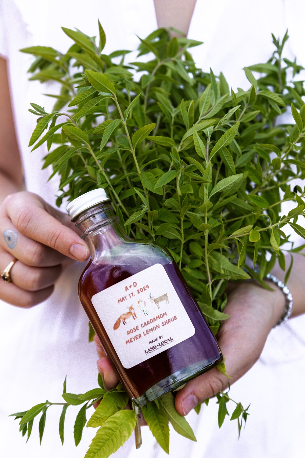 LaVere’s bespoke wedding drinks are an extra-local way for a couple to celebrate their special day. LeVere will develop a custom cocktail that can be served at a couple’s wedding reception, with the drink’s syrup base serving as a party favor for guests to take home. LaVere bottles the botanical wedding favors in 100ml TSA travel-friendly flasks with custom artwork.