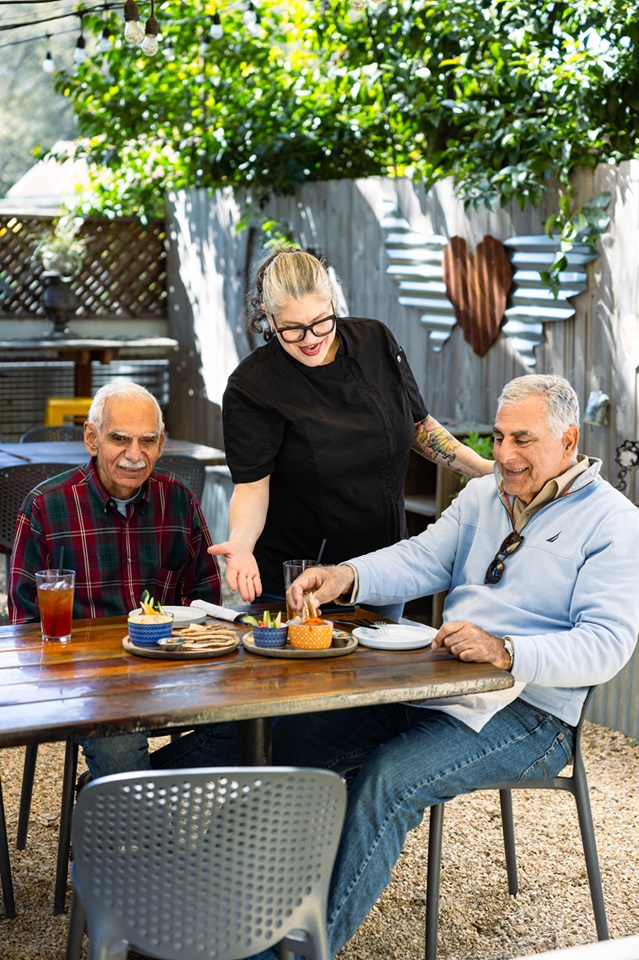 A couple of years ago, feeling ready to root, she bought out a restaurant space in Boyes Hot Springs, on Sonoma Highway, not far from where her mom has lived for 25 years, and became a first-time restaurateur in her 50s. But unlike catering, where you know how many people you are feeding and exactly how much food to prepare, the restaurant business is notoriously unpredictable with much smaller profit margins. “I’ve made some very costly, very painful mistakes,” Topham admits, including opening too staff heavy.