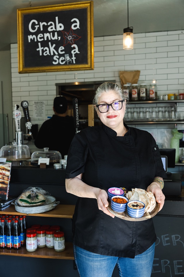 Her appreciation for top-quality ingredients is evident in the way she talks about where she sources them: a mix of local and imported goods including produce from Oak Hill Farm, beans from Rancho Gordo, her thinner Lebanese-style pita bread from a Palestinian family bakery in Sacramento, and a za’atar spice blend straight from southern Lebanon by way of a company in Michigan.
