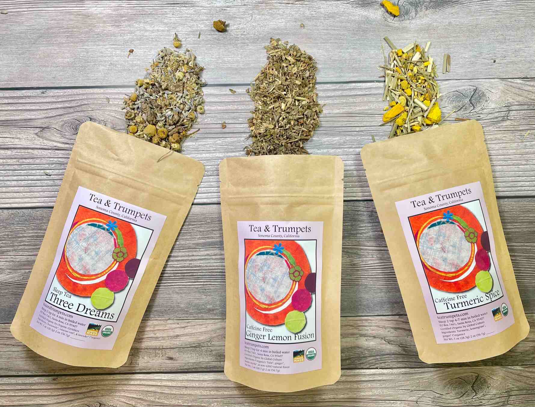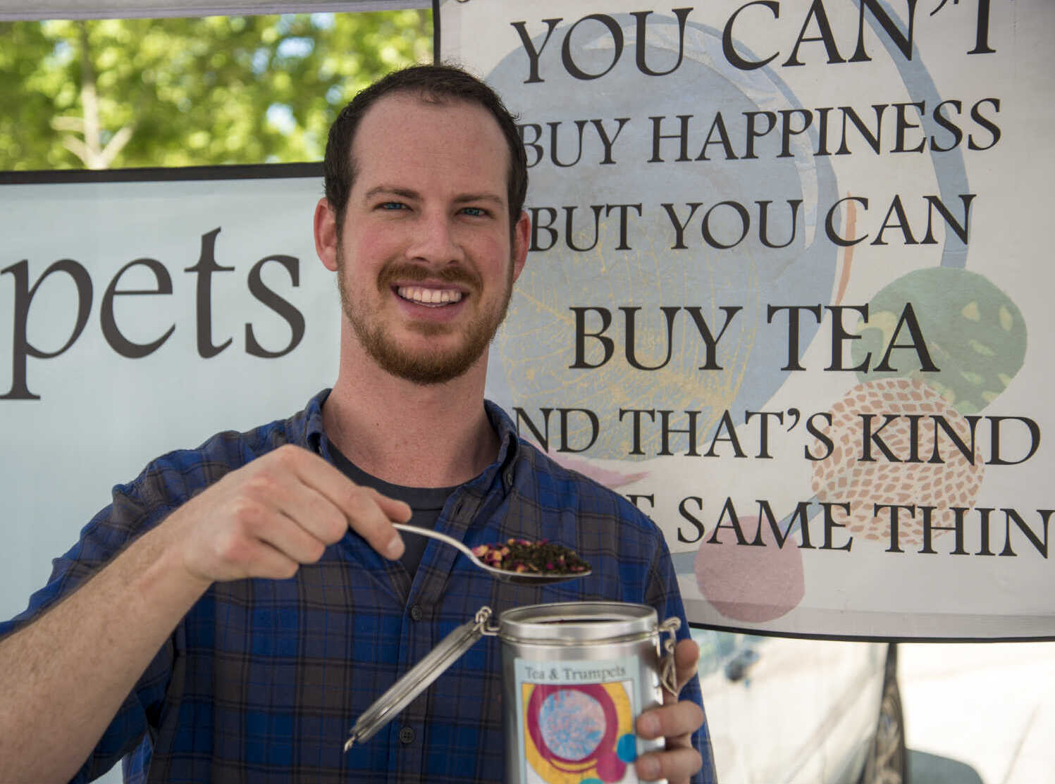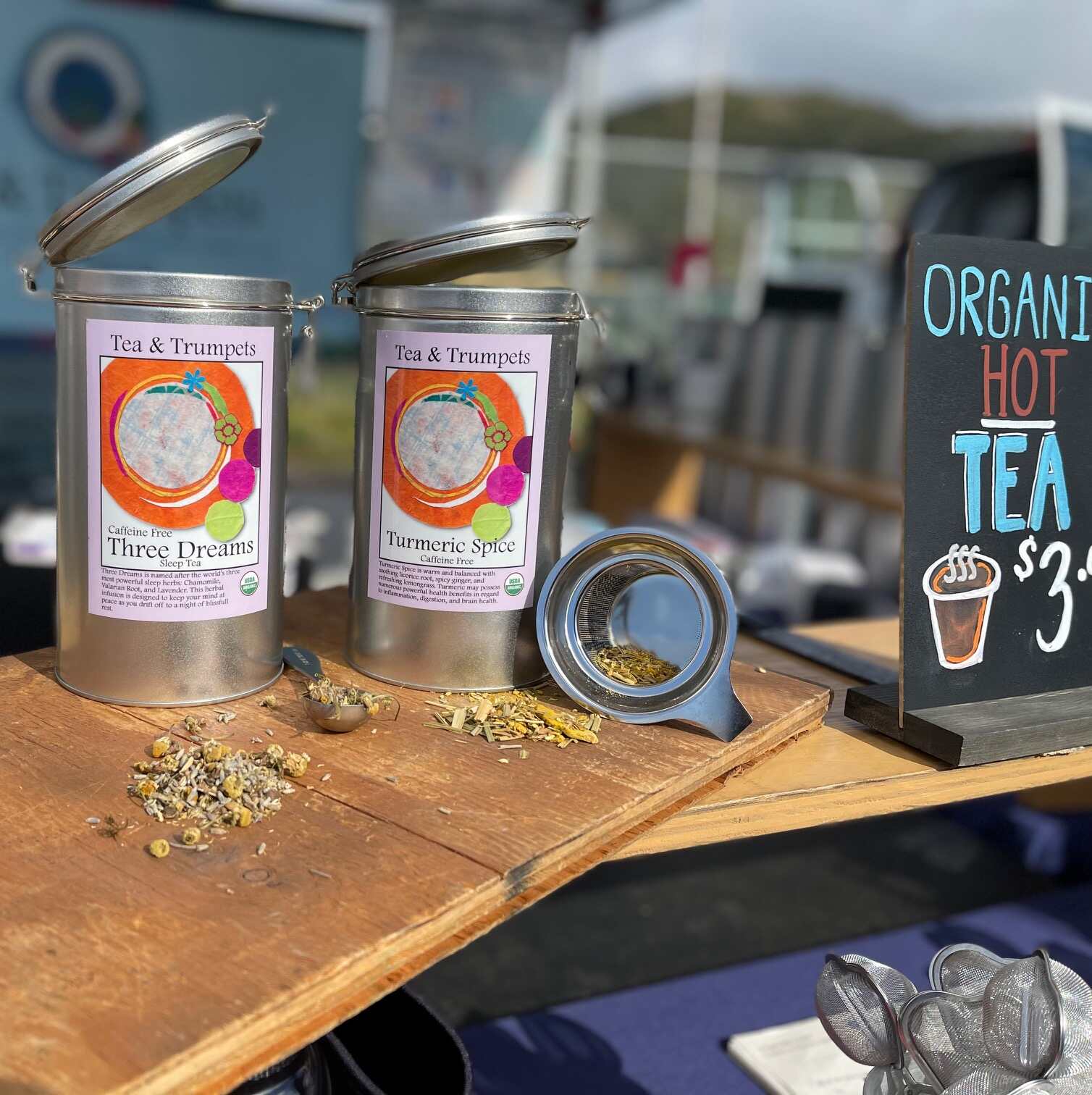 Tea has become my healthy way to cope with whatever life brings, and this past year I’ve bought it, brewed it, and sent it to more friends and family than I can count. Tea and Trumpets is a perfect discovery: doing good for the planet, our nervous systems, and our local ninjas. Like Bowden’s Farmers’ Market sign says: “You can’t buy happiness, but you can buy tea, and that’s kind of the same thing.”