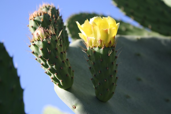 There are many Opuntia species, and they can be hard to differentiate, though Opuntia ficus-indica is one commonly valued for its fruit. In Santa Rosa, a massive Opuntia grows at the Luther Burbank Home and Gardens. Burbank worked on and off for nearly two decades to breed spineless cacti, an undertaking he felt was hugely important. His main goal was to develop a drought-tolerant livestock “forage plant” to thrive in hot, unwelcoming conditions globally. But Burbank’s cacti were more delicate than other varieties and prone to growing spines if left to their own devices.