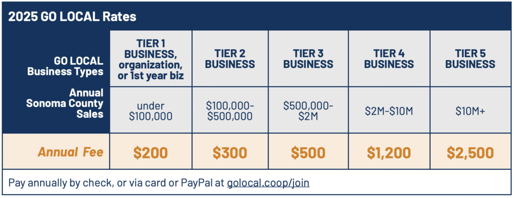 GO LOCAL is an organization of locally owned independent businesses. Members use a shared brand, targeted advertising, and a Rewards Card to increase sales and gain market share. Today, around 400 locally owned business owners, nonprofits and public agencies are GO LOCAL members, united by one mission: creating a resilient, thriving local economy in Sonoma County that supports people and the planet through economic localization.