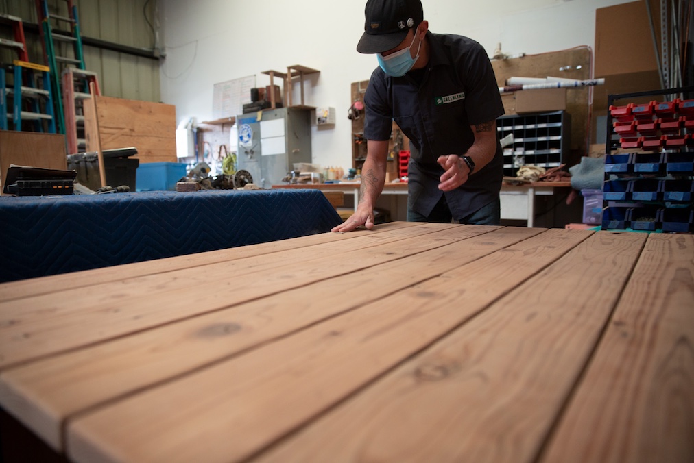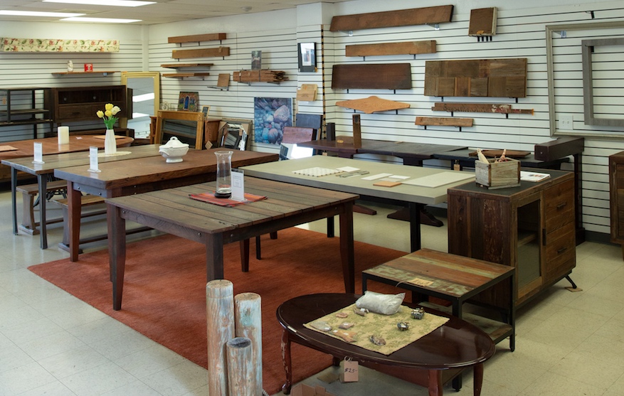 As we continue our tour around their 10,000-square-foot property, which includes 2 huge showrooms, lots of outdoor space, and a shop where woodworker Jeremy Gallegos turns reclaimed wood into gorgeous new tables, Tai and Bugge explain the unique aspects of their business.