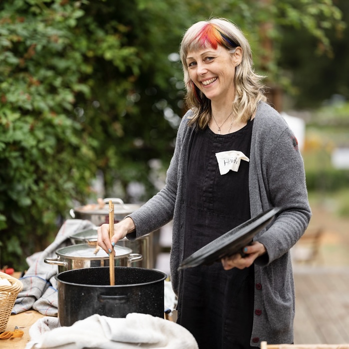 Heidi Iverson, a founding member of Fibershed, is a textile artist, clothing designer, and natural dye advocate who focuses on minimum waste practices. She teaches classes in natural dying, mending, and slow stitching and lives in a second-growth redwood forest in western Sonoma County with her husband and two ridiculous cats.