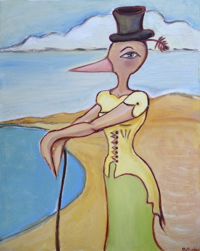 She received her formal art training at the University of California at Santa Barbara, where she primarily worked with oil on canvas. Nell has been sculpting and creating molds using cutting-edge materials to create plants, landscapes, cityscapes, and underwater worlds with a futuristic, space age design. She has found a voice in her humanistic bird and fish characters and with her sculptural paintings. Nell lives with her husband and three daughters in Sebastopol, California.