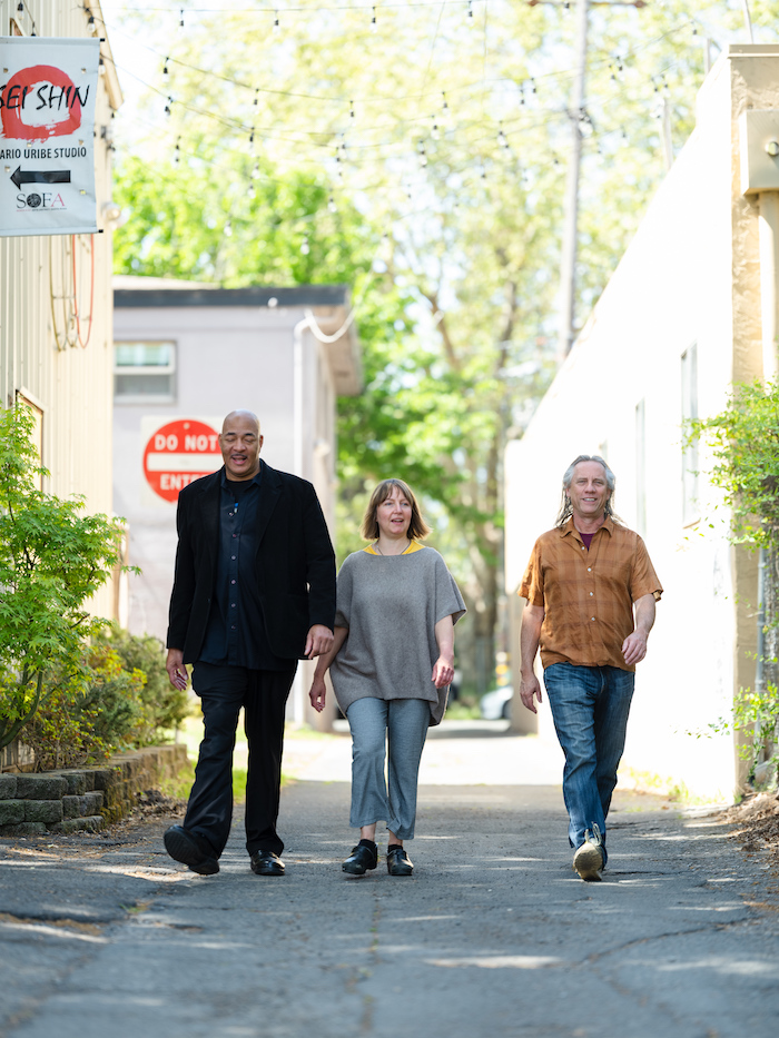 From the outside, despite its vibrantly painted orange door, the Imaginists’ theater space tucked away in Santa Rosa’s South A Arts District is quiet and unassuming. The building itself, declared “artist owned, artist occupied,” was purchased by the Imaginists in 2017, thanks mostly to a campaign that garnered vast support from their community. I was welcomed in by founders Amy Pinto and Brent Lindsay as well as their old friend and long-time collaborator Stephan K. Patterson, a musician and actor largely responsible for the Imaginists’ abstract, experimental podcast Theater in the Woods. With its large windows, roll-up cargo doors and high ceilings, the echoing space feels open and bare, but filled to the brim with limitless, liminal possibilities.