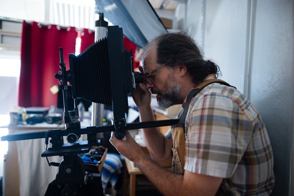 Although some, including his accountant, were openly incredulous when Jeremiah decided to hang his shingle on the photo corner 14 years ago, his regular customers get it, considering the spot a touchstone for the local photographic community. Long-time friend and employee Andie Thornton tells me, “You can get a used camera anywhere if you really want to, but people come here because Jeremiah makes them feel special and cared for. It’s just a messy-ass camera store, but people love him.” She thinks this is the fundamental element that makes his tintypes so stunning.