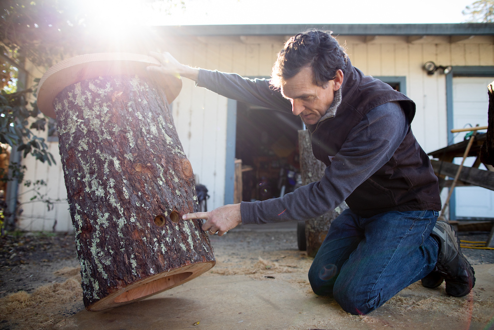 Thiele calls their landmark arboreal nest project LocApiary, a collection of bee nests kept locally as a functional part of a healthy ecosystem. Apis Arborea has installed approximately 50 of these nests for free in partnership with local environmental organizations like LandPaths, as well as farms, vineyards, private properties, and schools like Summerfield Waldorf and Sebastopol’s Downtown Charter. Apis Arborea hosts workshops demonstrating how to make these hand-crafted arboreal nests, and they can also be purchased directly for around $825. The idea is in its infancy, but growing steadily. “This year is going to be a very big year for us,” Thiele says confidently.