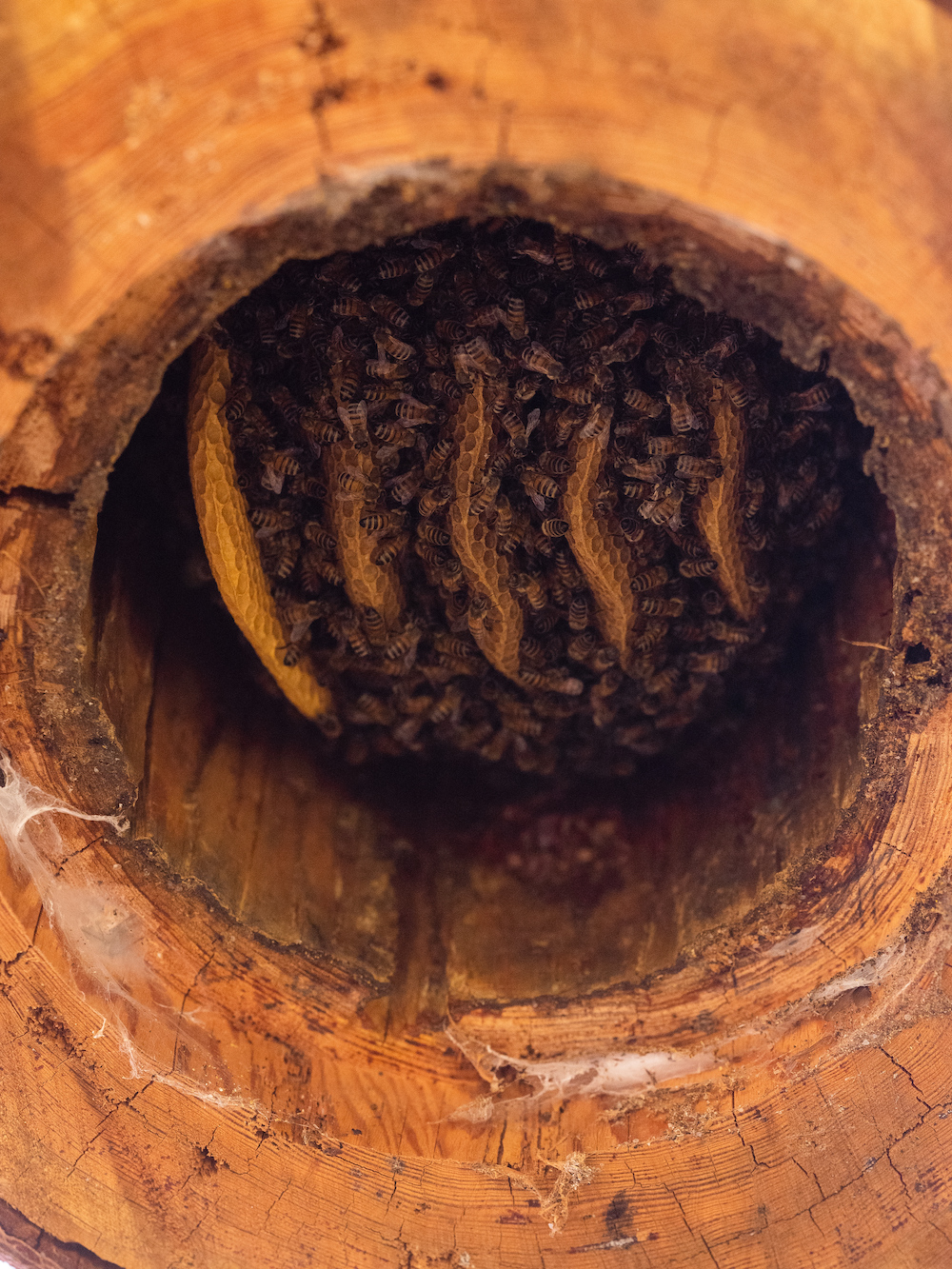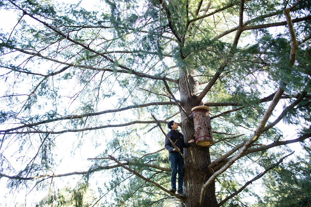 What Apis Arborea is trying to create with their arboreal nest installation program are indigenous ecosystems for honey bees, where the watershed, with its diverse resources and natural habitats away from mono-cropped agriculture, serves as the apiary. “I wanted to shift attention and awareness away from commodities, away from honey, and away from pollination services, which is the biggest driver currently, towards natural nesting environments. Coming all the way back to the roots, back to the wild.”
