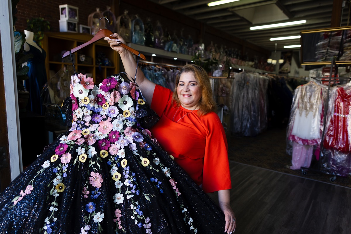 But she didn’t have that kind of money. Months went by, her back continued to heal, and then, one night, she and her husband, Gustavo, turned 50 dollars at the casino into thousands. After taking over the business, she received a mysterious free shipment of dresses. Almost two decades later, they’ve moved twice and expanded into the Little Princess Boutique, located across 4th street and run by Gustavo.