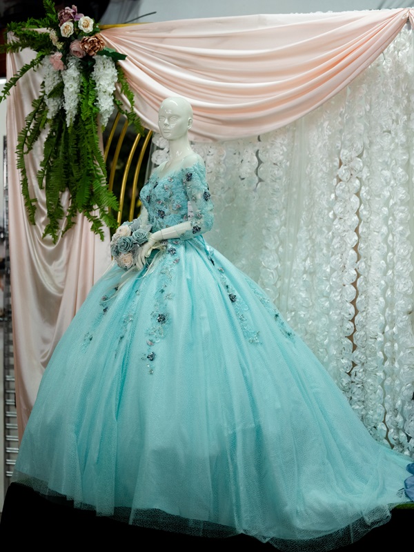 They sell more than just dresses: sparkly heels, crowns, chokers, earrings, bracelets, teddy bears, flower arrangements—this place is a one-stop shop for all things glam and glittery. “I still don’t have much money,” Esperanza says. “But I am lucky to have this store.”