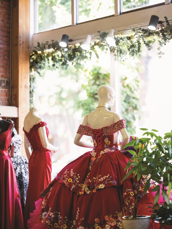 A former thrift store in Railroad Square has been transformed into a sea of satin, silk, sequins, organza, tulle, and lace in shades ranging from deep ocean navy to the palest pinks, lavenders, and creams. These elaborate gowns, which look good enough to eat, can be found adorning the county’s newest 15-year-olds every weekend. At the helm of this long-running enterprise is Esperanza Rico, who, despite never having a quinceañera of her own, loves helping others create theirs.