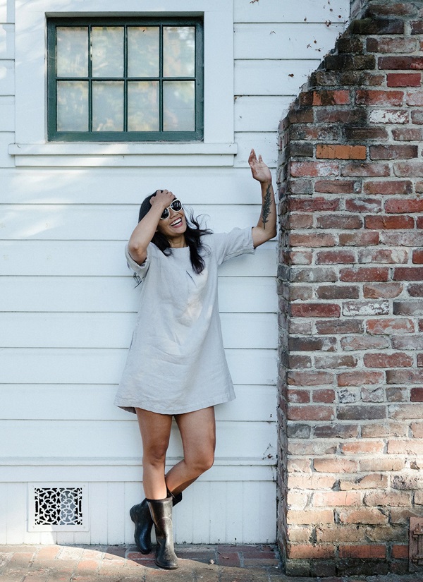 “The clothing we wear tells a story about who we are and how we feel,” Saint November’s Theresa Hughes says. Her story begins with high-quality, texturally rich fabrics and revolves around themes of utility, beauty, and celebration. Citing an eclectic mix of influences, like historic Japanese textiles, Parisian aesthetic, workwear, ’50s and ’60s mod and beatnik à la Brigitte Bardot, and even turn-of-the-century prison uniforms, her designs are equally at home working outdoors during the day or attending a play in the evening. “I’m inspired by simple, highly functional items that also feel beautiful.”