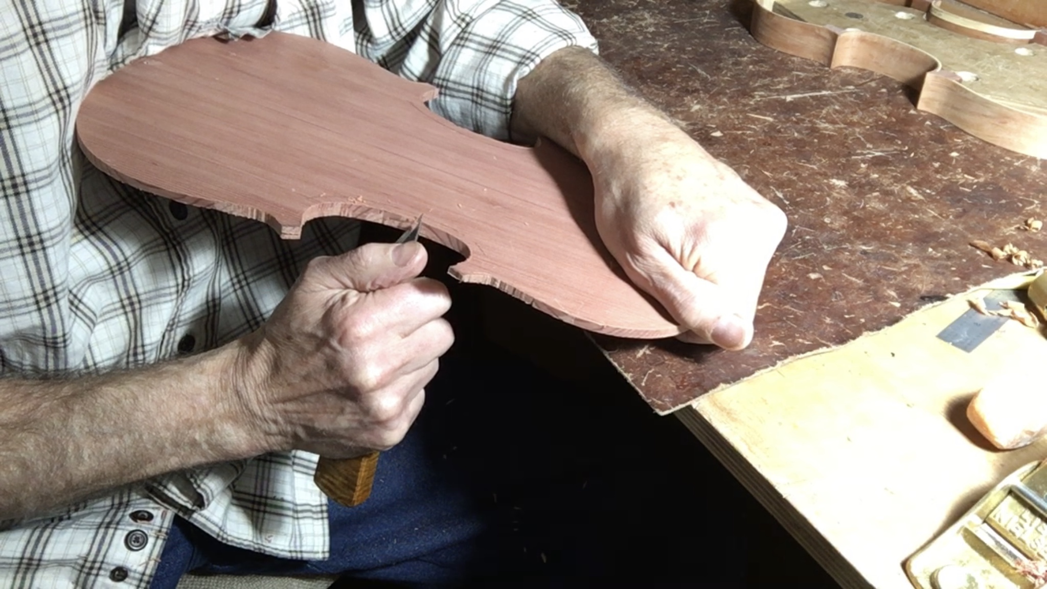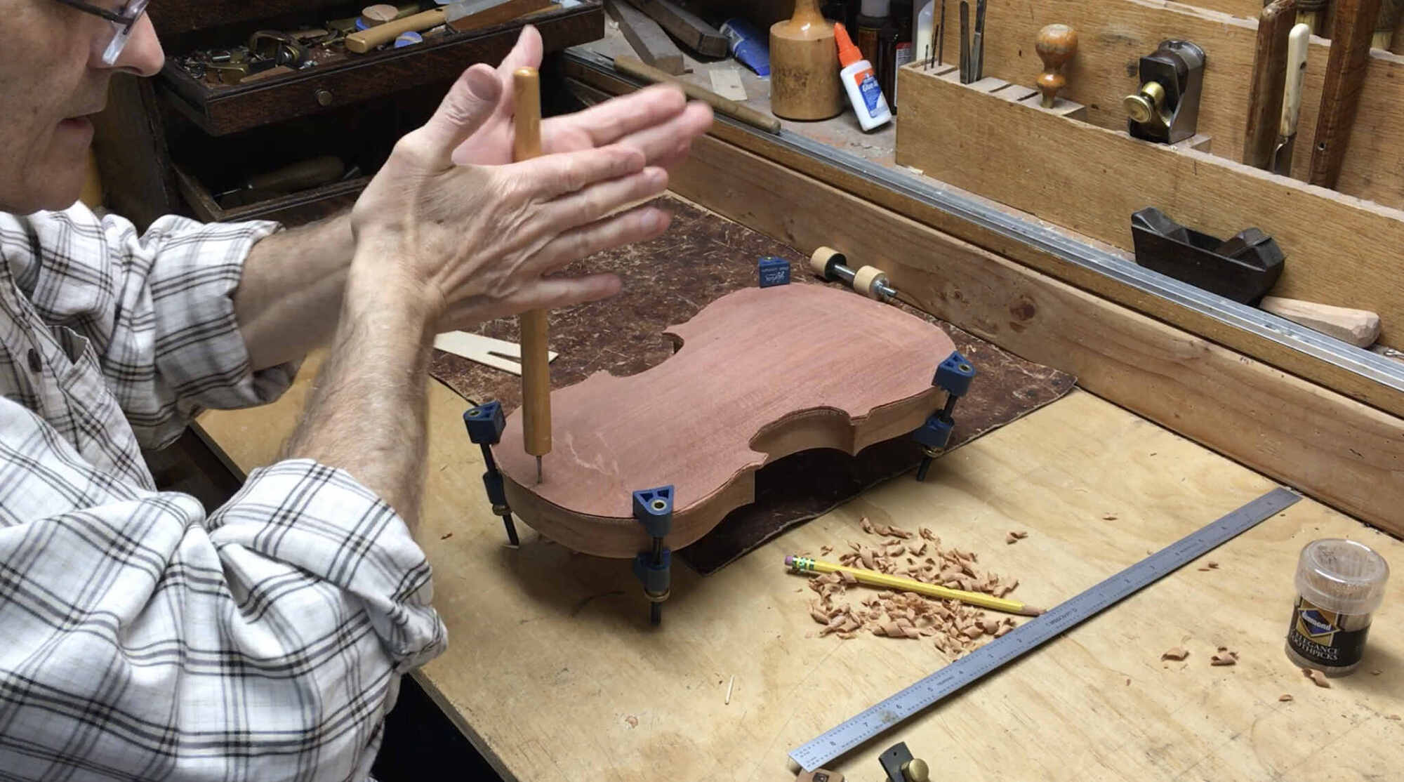 I was born and raised in England. My father was a sculptor who encouraged his kids to use his studio, so I grew up making things. I was also an enthusiastic, but not very accomplished, musician. It wasn’t until my early 30s that I finally figured out a way to combine the two interests—and possibly make a living doing it. In late 1987, I needed a new bridge for my fiddle, and when I walked into the local violin shop, the light went on for me. Four months later, I was enrolled in a violin-making school in Wales, UK. The school had only 30 students, aged 16 to 60, from all over the world. I spent the next three years putting in long hours learning the basics of violin-making and repair.