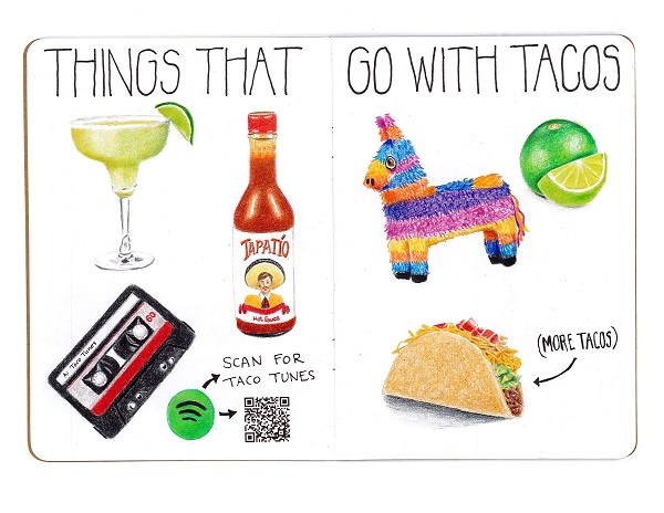 My Taco Life: The Sketchbook Project arose from a crowd-sourced art exhibit out of the Brooklyn Art Library in New York. Each year, they send out blank sketchbooks that artists can fill however they’d like. They provide suggested themes but really, anything goes. After deciding to take on the sketchbook challenge, Michelle Marques of Santa Rosa chose “Tacos,” quickly realizing that she had a lot of personal stories related to the subject. Plus, there were important Sonoma County taco stories to share. My Taco Life has been sent to the Brooklyn Art Library to be catalogued and added to the growing collection from all over the world. Michelle’s book will join other sketchbooks for a summer pop-up tour to Toronto, Chicago, and Atlanta before heading back to its permanent home in New York, where anyone can come to read about this little section of Sonoma County taco lore. sketchbookproject.com
