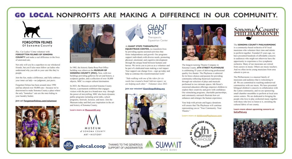 GO LOCAL was featured in the Nonprofit Issue of the North Bay Bohemian on October 16, 2024