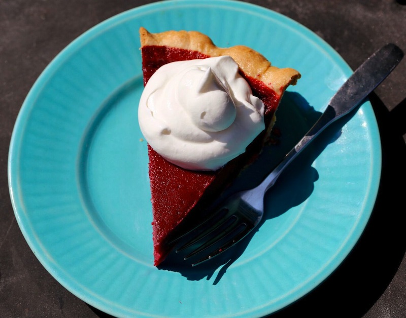 •Serve topped with whipped cream or if you are a real food-dork, serve with a dollop of the following mix: Four tablespoons soft, mild goat cheese, 1/2 cup heavy whipping cream, ½ teaspoon vanilla, one teaspoon honey, 1/2 teaspoon dried ginger (for carrot pie) or cardamom (for beet pie). Blend or mix well with a fork.