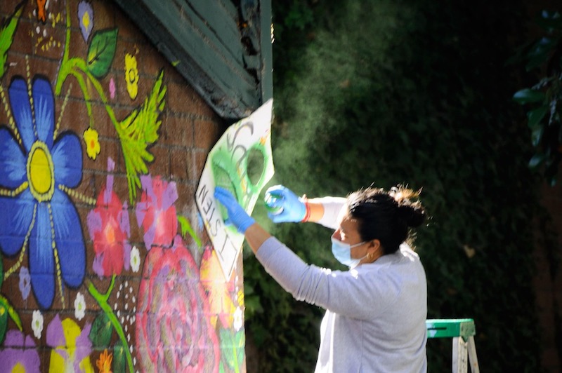 Community investment grants from Supervisors Chris Coursey, Lynda Hopkins, and James Gore, in addition to grants from Creative Sonoma and the Raizes Collective have provided the 12 women and two lead artists with stipends of $1,500 apiece for the mural.