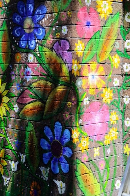 “I had nothing to do with it, not the design nor the picking of the colors,” says lead artist Zuniga, who created his own version of art school, empowering the women to make this mural their own. “My part was running a team of artists, setting up ladders, mixing up paint.” He taught them techniques like how to use a roller with three different colors, or how to create a flower with one unbroken move, dubbing them Fridas after the iconic painter. “Actually, we are Las Sufridas [the suffering ones],” said Socorro Diaz.