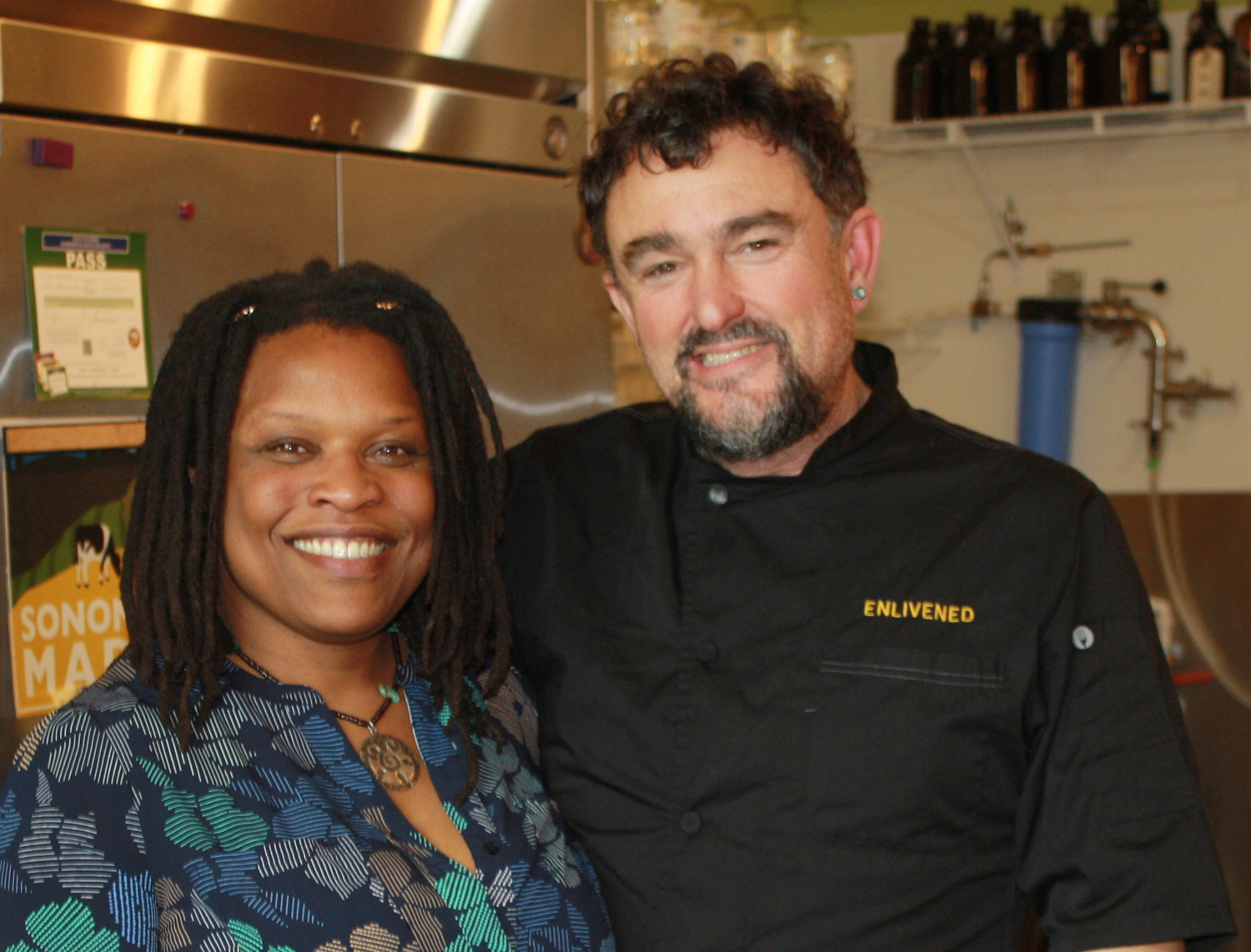 In 2012, the couple opened The Kefiry. Tucked at the back of a strip mall on Gravenstein Highway in Sebastopol, the storefront and tasting room has become the flagship for Enlivened, their line of live culture fermented probiotic beverages in flavors like Tulsi Rose, Root Beer, Turmeric, Guayasa, and Lemon Ginger.