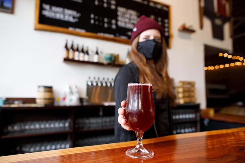 While a traditional-style beer can be brewed in about two weeks, the Shady Oak sours are aged in a variety of previously-used barrels for an average of two years. This exercise in optimism means that these brews are created with the hopeful confidence that customers will be around to drink them when they are ready, fires and pandemics be damned. Steve lightheartedly calls this “an interesting business plan.” I call it a mad-scientist inspired labor of love, and he agrees.