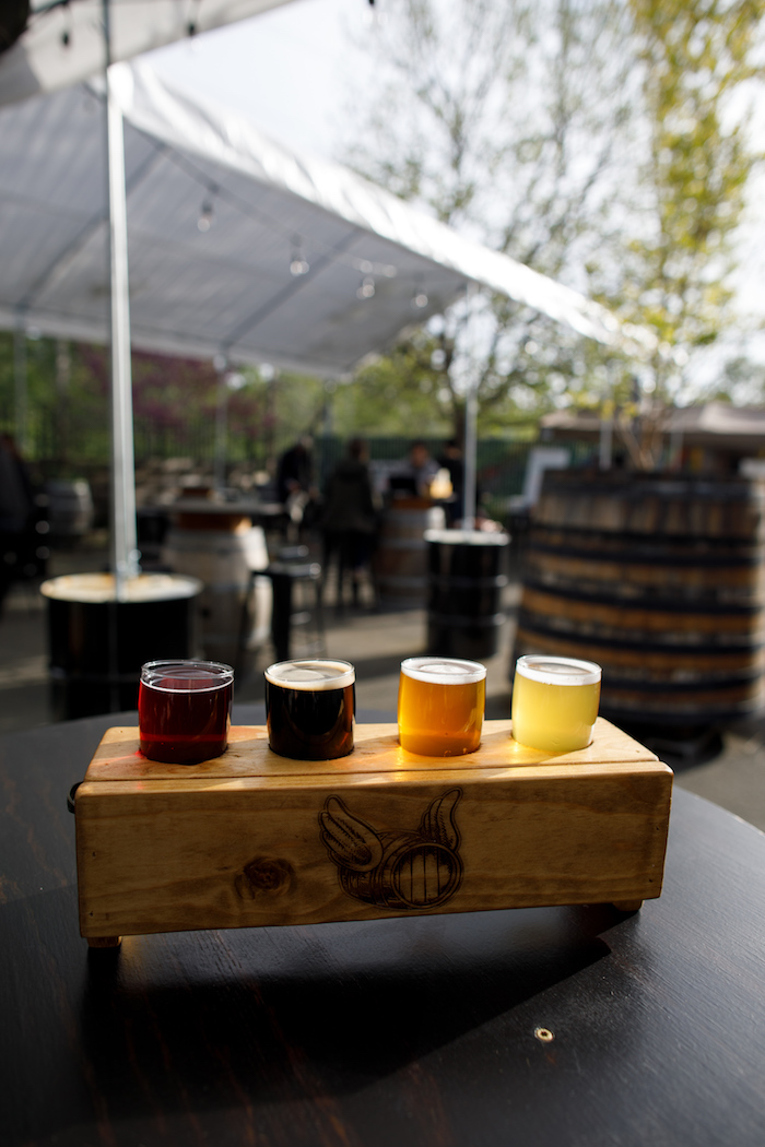 The beers on tap the day I visited ranged from pleasantly tart to searingly sour. I was instantly drawn to the jewel-toned Shady Locals, a refreshing sour ale made with black currants. But the real surprise was their Key Lime Gose, a subtly tropical sour wheat ale made with lime, vanilla bean, and sea salt that paired perfectly with the tacos being served by the truck parked in the beer garden that day. Also on tap were a few IPAs, a blonde ale, and a stout dubbed “The Velvet Couch.” When I ask him about including these more typical beers he shrugs and says, “Every restaurant needs a cheeseburger on the menu, I get that.”