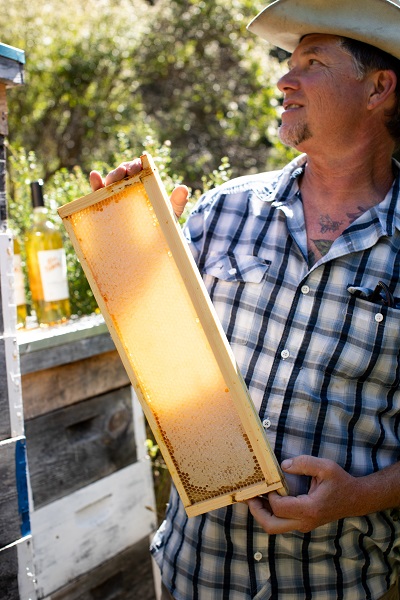 “I’m a bit paranoid about placing my bees too close to a traditional vineyard that applies chemicals because I lost 24 out of 25 hives near a vineyard years and years ago,” Barker says. “I’m pretty sure it was due to the application of vineyard chemicals.”