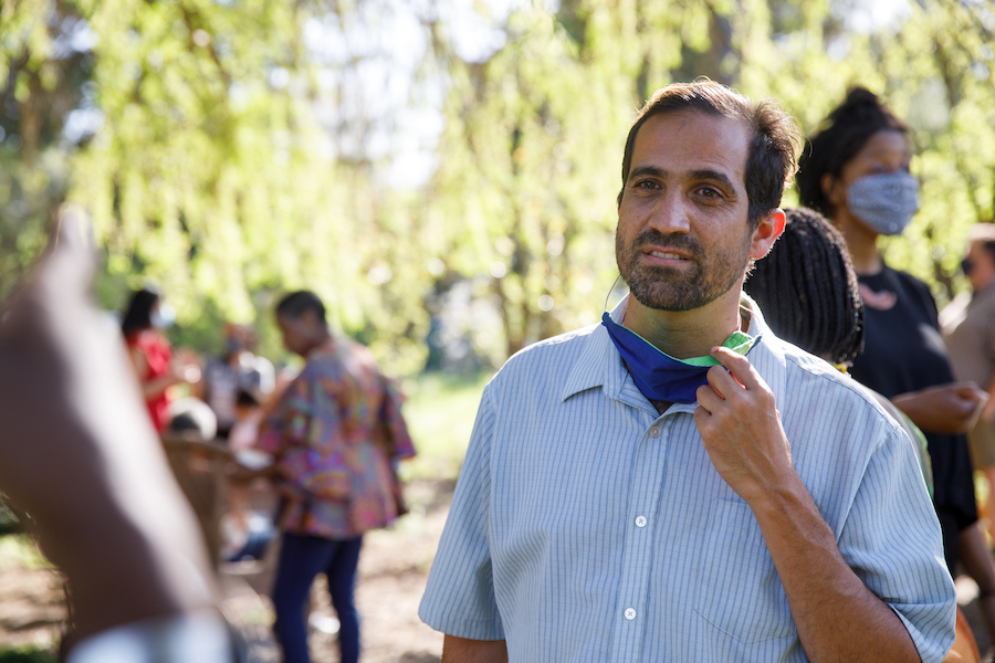 Having flown all the way from Brooklyn, New York, for today’s land blessing is Kamau Franklin, who recalls his own response decades ago when someone first suggested he get his hands in the dirt: “I ain’t doing that slave work!” To a young Black man like him, farming didn’t just belong to a bygone era; it reeked of exploitation, of violence, of submission. Liberation meant escaping the land to which his ancestors were shackled.